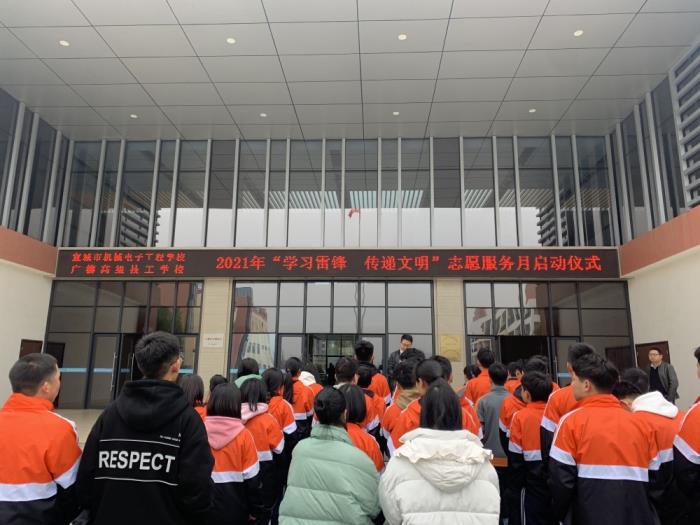 3月5日上午,宣城市机械电子工程学校举行2021年“学习雷锋,传递文明”志愿服务月启动仪式。校学生处负责人章银照、团委书记李君璐以及各班班长、团支书参加启动仪式,李君璐主持仪式。