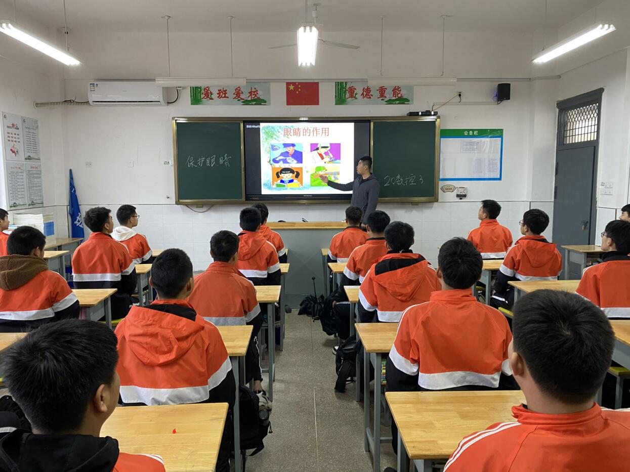 3月16日晚自习,校学生科组织所有班级开展了“预防近视 健康用眼”主题班会活动。此前,学生科负责人章银照对各班班长进行了集中培训。