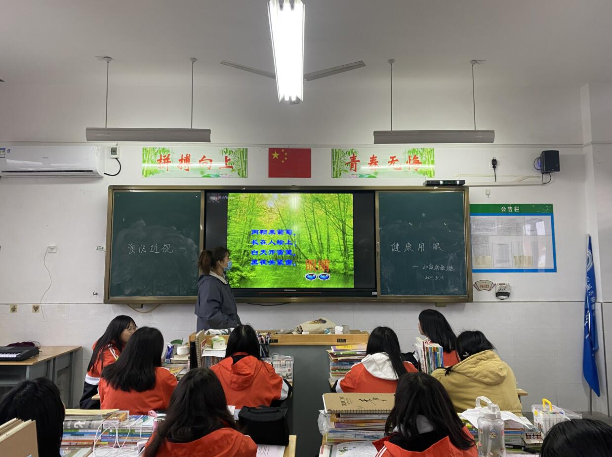 各班主任在班会上宣传健康用眼知识,让广大学生知晓了爱护眼睛、预防近视的重要性,进一步增强了同学们爱眼护眼的意识,收到了良好的效果。(程明)
