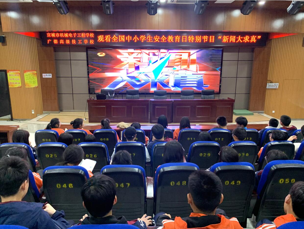 在第26个全国中小学生安全教育日来临之际,3月29日,宣城市机电学校组织开展了安全教育日主题教育活动,各班开展以“知危险会避险”为主题的班会,并集中全校班级学生代表观看安全教育日特别节目。