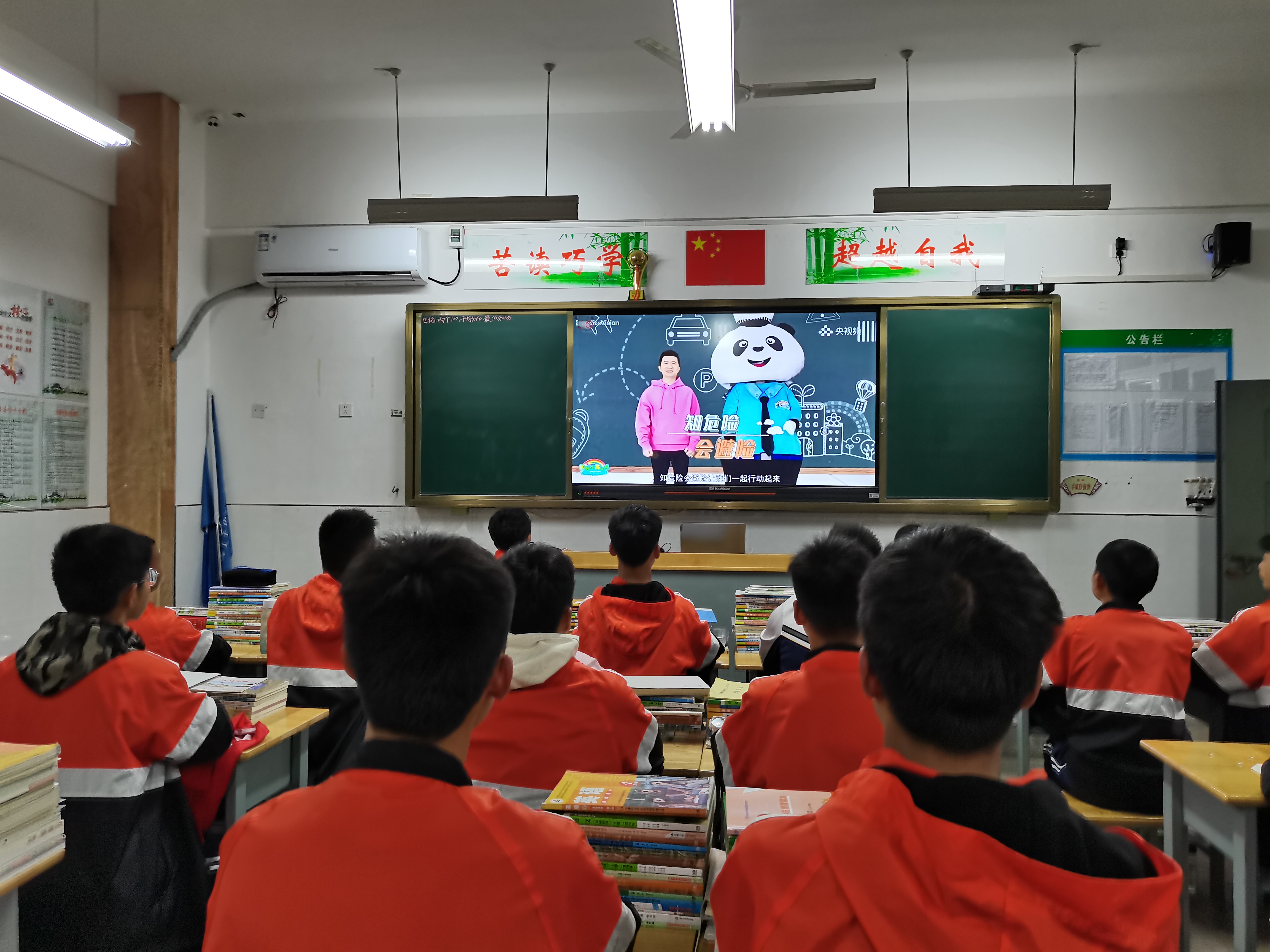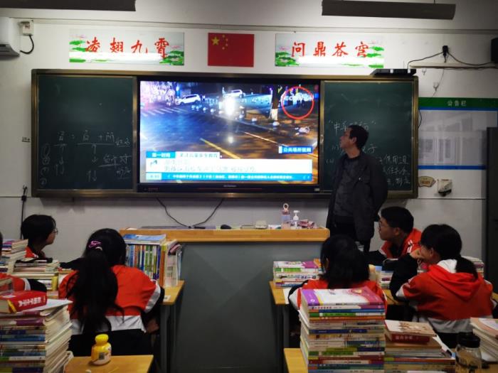 主题班会过后,各班通过央视频、央视少儿频道官方新媒体账号,公安部交通管理局微博账号、视频号,未来网等网络直播平台为学生播放了“知危险会避险”交通安全体验课特别节目。