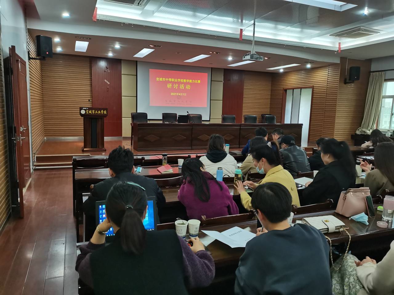4月1日上午,宣城市中等职业学校教师教学能力比赛和在线精品课程建设研讨活动在宣城市工业学校召开。市机电学校科研处主任陈远清、市学科中心组组长简光军,13位拟参赛教学团队和4位在线精品课程负责人参加了活动。