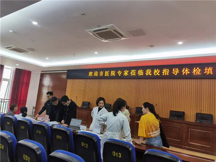 4月28日,为更好进行我校教职工常规体检,市人民医院组织专家到校,为教职工进行体检前评估咨询。医院专家耐心听取教职工身体状况的咨询,并针对性地对体检项目提出建议和意见。(宁向辉)