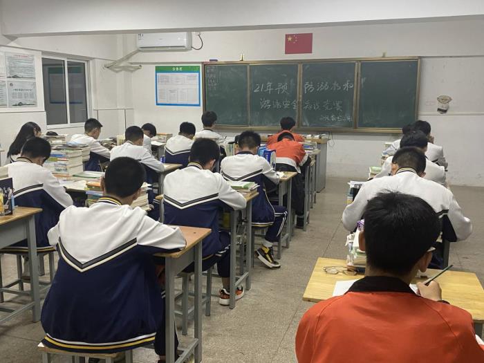 学习完防溺水相关知识后,竞赛正式开始,试题形式多样:有填空题、判断题、简答题等,内容涉及预防溺水、溺水时应该如何自救与救护他人、游泳的注意事项等。在竞赛中,学生以饱满的热情参加比赛,认真写下每一题的答案,答题正确率高。