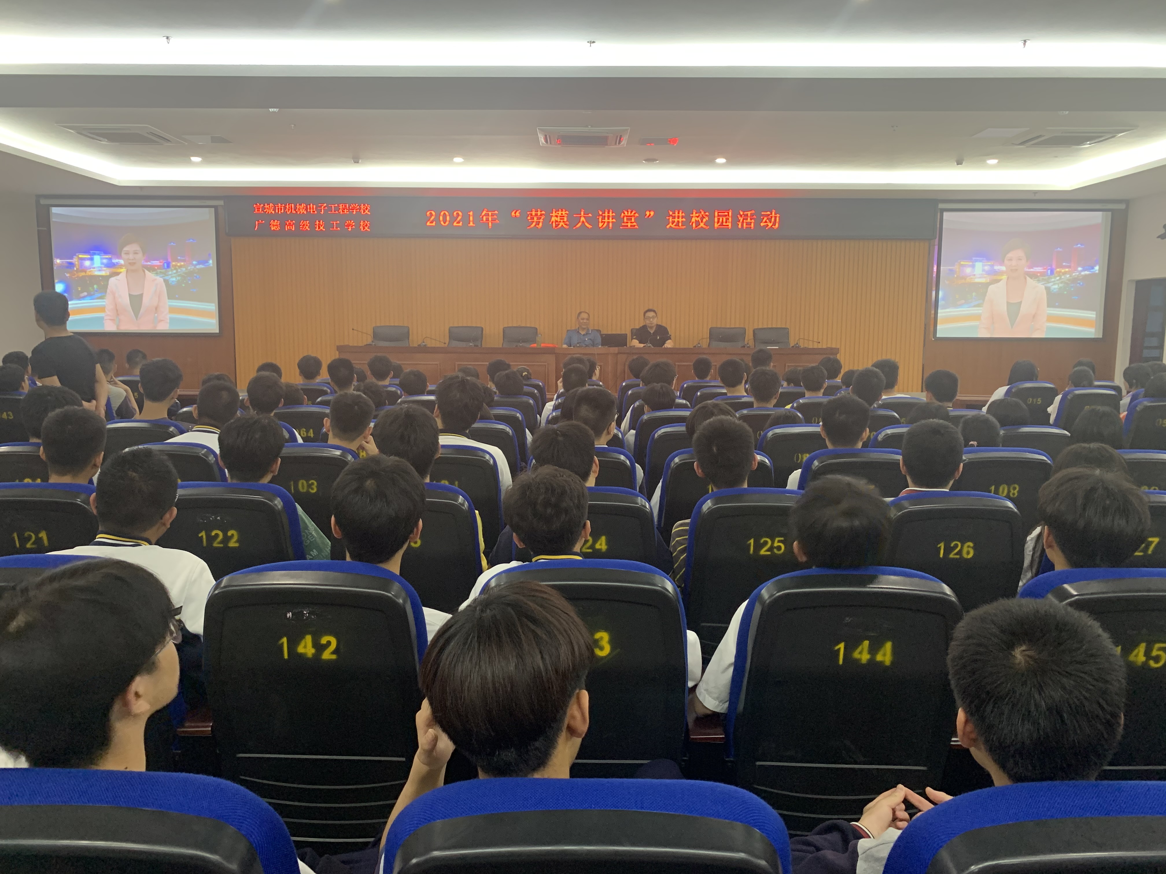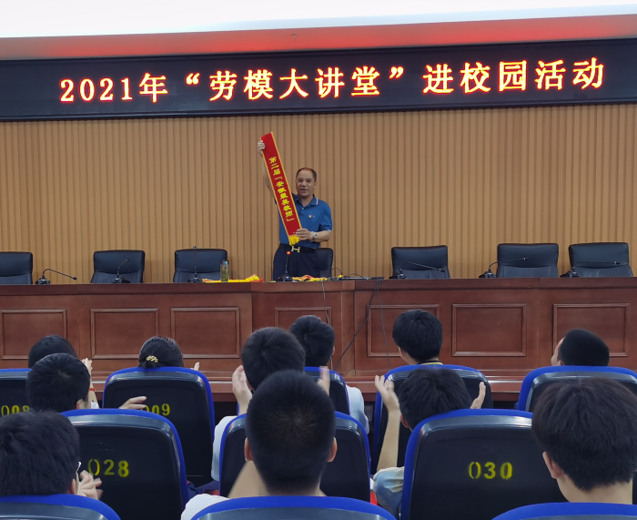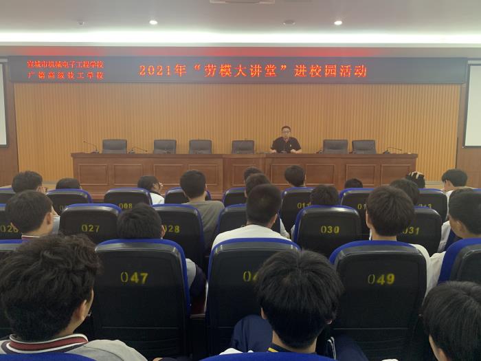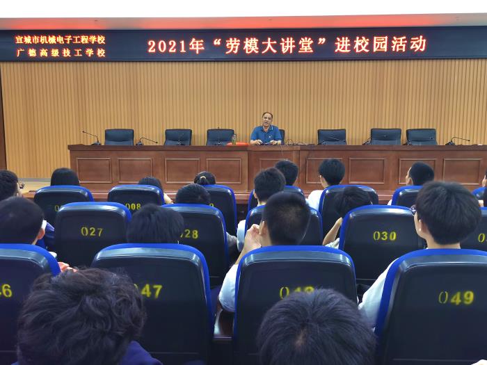 为大力弘扬劳模精神,激发广大青年学生树立远大理想,与时代同向同行,5月10日晚自习,宣城市机电学校(广德高级技工学校)开展“劳模大讲堂”进校园活动。活动邀请了本校广德市首届先进工作者、 2021年度宣城市先进工作者王海安老师做专场报告,高一、高二各班学生代表近300人参加报告会。学生科负责人章银照主持报告会。