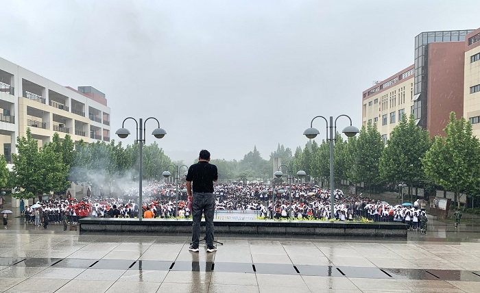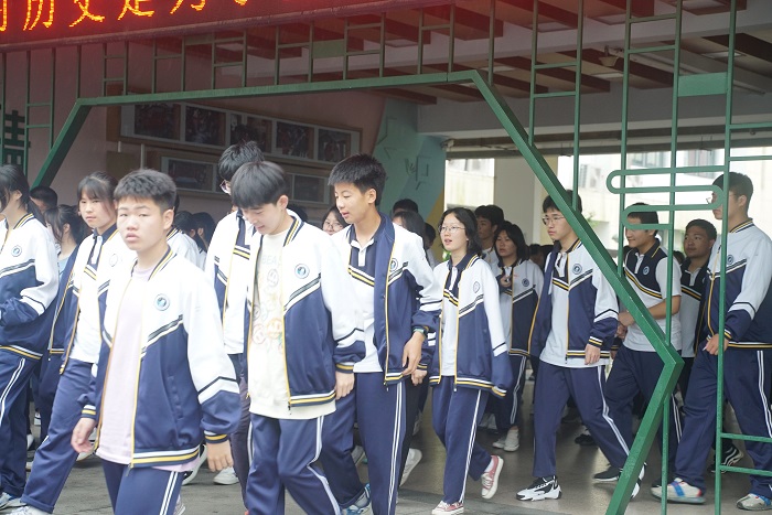 8点20分,“预警”声响起,学校总指挥长赖家荣下令启动教学楼疏散人员应急预案,副总指挥杨林用喊话器指挥,班主任、上课教师停止教学工作,指定坐在前、后门边学生担任本班撤离队长,分别打开门并固定好,待全部同学撤离后撤离;同时组织教室内前排学生有序从前门出,后排学生有序从后门出;学生撤到走廊后,教师指导学生自动排成两纵队;各班按班级距离安全出口由近到远、楼层由低到高的顺序,逐一撤离,到达指定的安全区域集中。