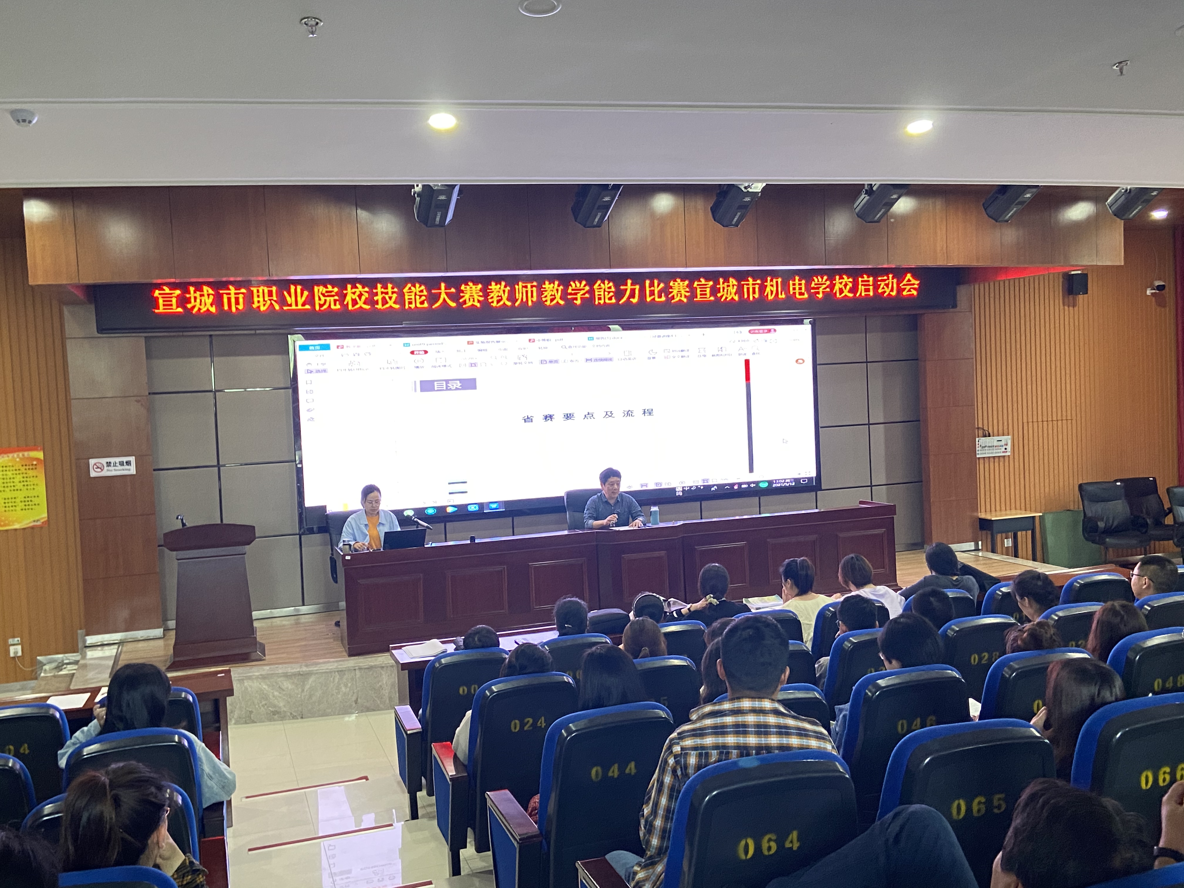 5月12日下午,市机电学校召开宣城市职业院校技能大赛教学能力比赛启动会。副校长胡斌、科研处主任陈远清及11个参赛团队,14位教研组长参加了会议。