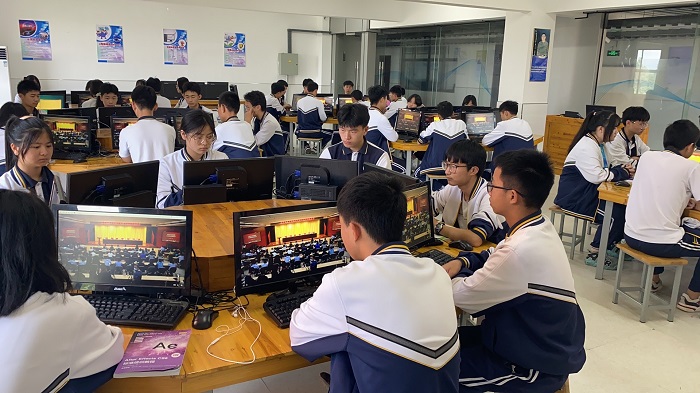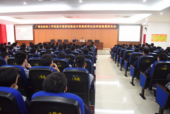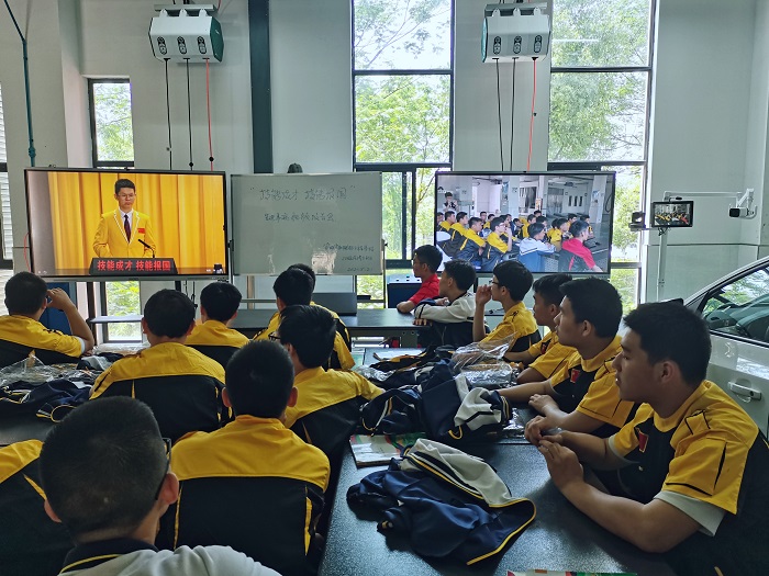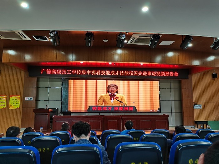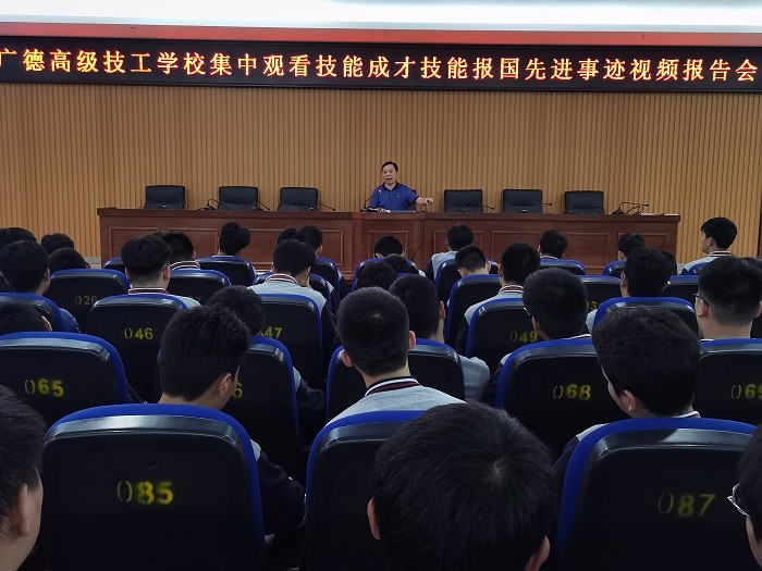 为深入贯彻落实习近平总书记对技能人才工作的重要指示和李克强总理批示精神,培养更多高素质技术技能人才、能工巧匠、大国工匠,弘扬工匠精神,5月21日上午10时,广德高级技工学校全体师生近4000人通过网络直播的方式分四个会场参会。一会场是:全校各班级学生,由班主任或授课老师组织在本班教室收看;二会场是:机电部19级技工班学生,由学生科组织在图书信息中心二楼会议室收看;三会场是:各专业全体教师(有课的教师随班级观看),由教研组长组织在教研组办公室或自行安排地点集中收看;四会场是:各处室人员及校级领导,由党政办组织在图书信息中心一楼会议室收看。