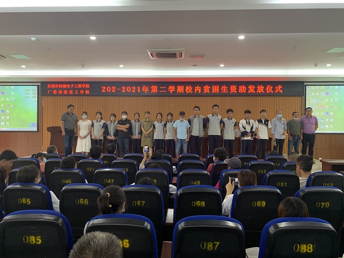 5月31日上午,宣城市机电学校(广德高级技工学校)在图书信息中心二楼报告厅举行2020至2021年第二学期校内贫困生资助发放仪式。校学生科负责人章银照主持仪式,学校副校长杨林出席仪式并讲话,受资助学生及家长共两百余人参加仪式。