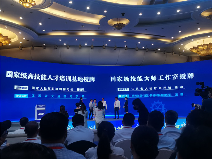 开幕式现场,国家人社部职业能力建设司副司长、一级巡视员王晓君,江苏省人社厅厅长戴元湖、副厅长顾潮,全国技工院校校长论坛理事长邵伟军,镇江市委书记马明龙出席开幕式并见证签约。马明龙代表镇江市委、市政府致辞。