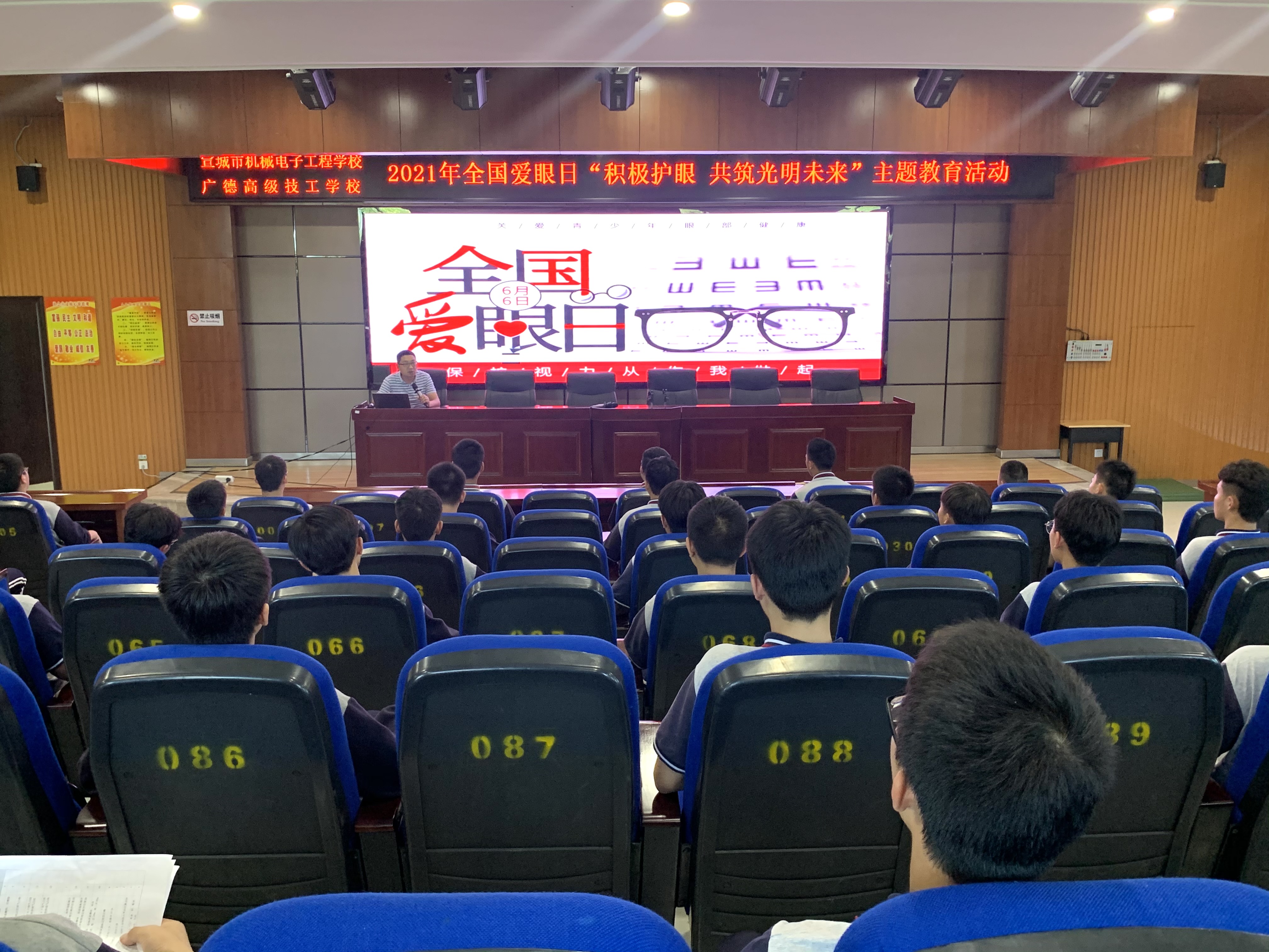 为了有效降低青少年近视发生率,减少近视低龄化、重度化的现象,6月5日,值全国第26个爱眼日来临之际,机电学校集中各班班长开展全国爱眼日主题教育活动,学生科负责人章银照主讲。