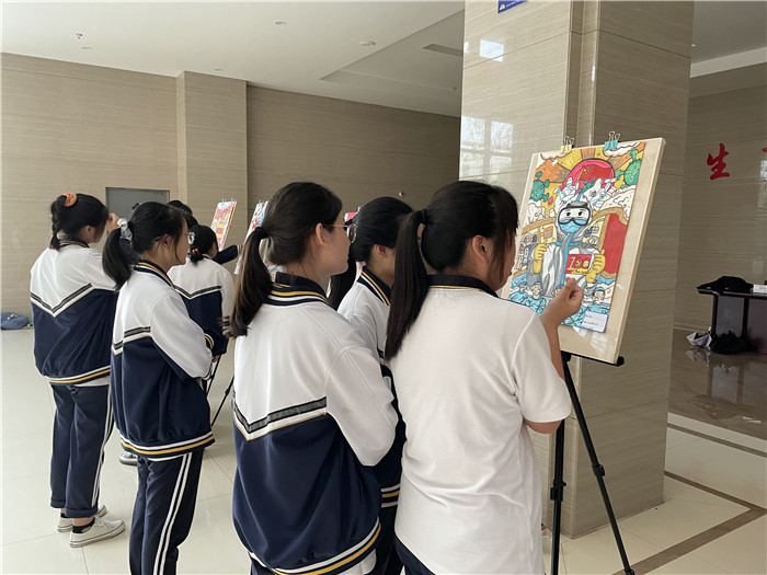 据悉,此次活动前后历经一个月,学生踊跃参与,收到近百件作品,经过美术老师评审,最终选取了20多幅作品进行展出。活动激励了广大师生使命担当,砥砺奋进,增强了广大师生爱党爱国爱社会主义的巨大热情。(宁向辉 图片:杨开雯)