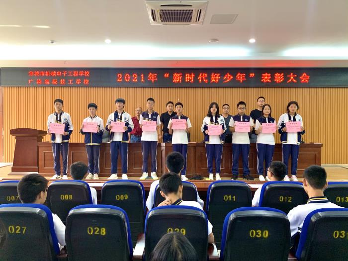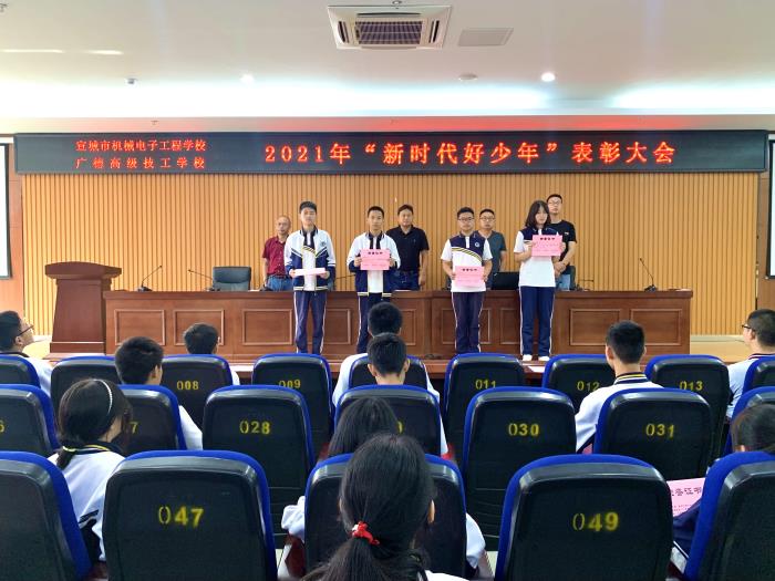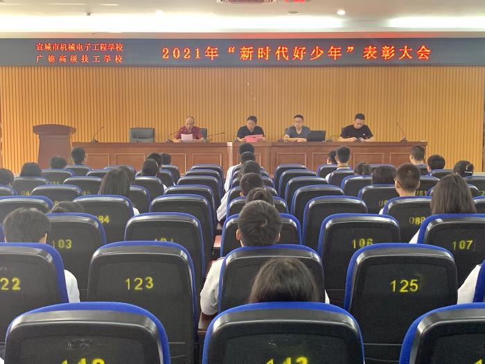 为表彰优秀,树立榜样,激励争先,6月23日,宣城市机电学校(广德高级技工学校)开展了2021年度新时代好少年表彰大会。副校长杨林,校关工委办公室主任沈传顺,校学生科负责人章银照,校团委书记李君璐出席活动。我校广德市“百优新时代好少年”4名,校级“新时代好少年”60名,学生会全体成员80余人参加活动。会议由章银照主持。