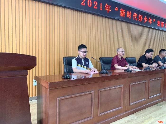 李君璐宣读校级“新时代好少年”表彰文件,沈传顺宣读广德市“新时代好少年”表彰文件,并为获奖同学进行颁奖。