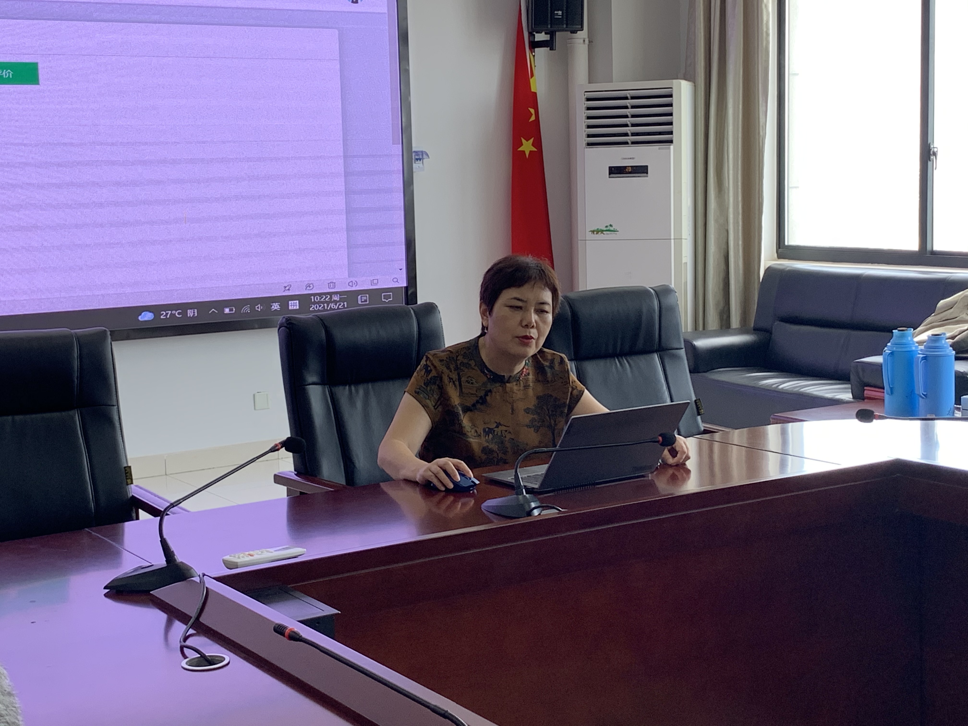 章银照对学校进行简单介绍。彭凌龄重点对合肥经贸旅游学校德育与劳动教育情况进行解说。