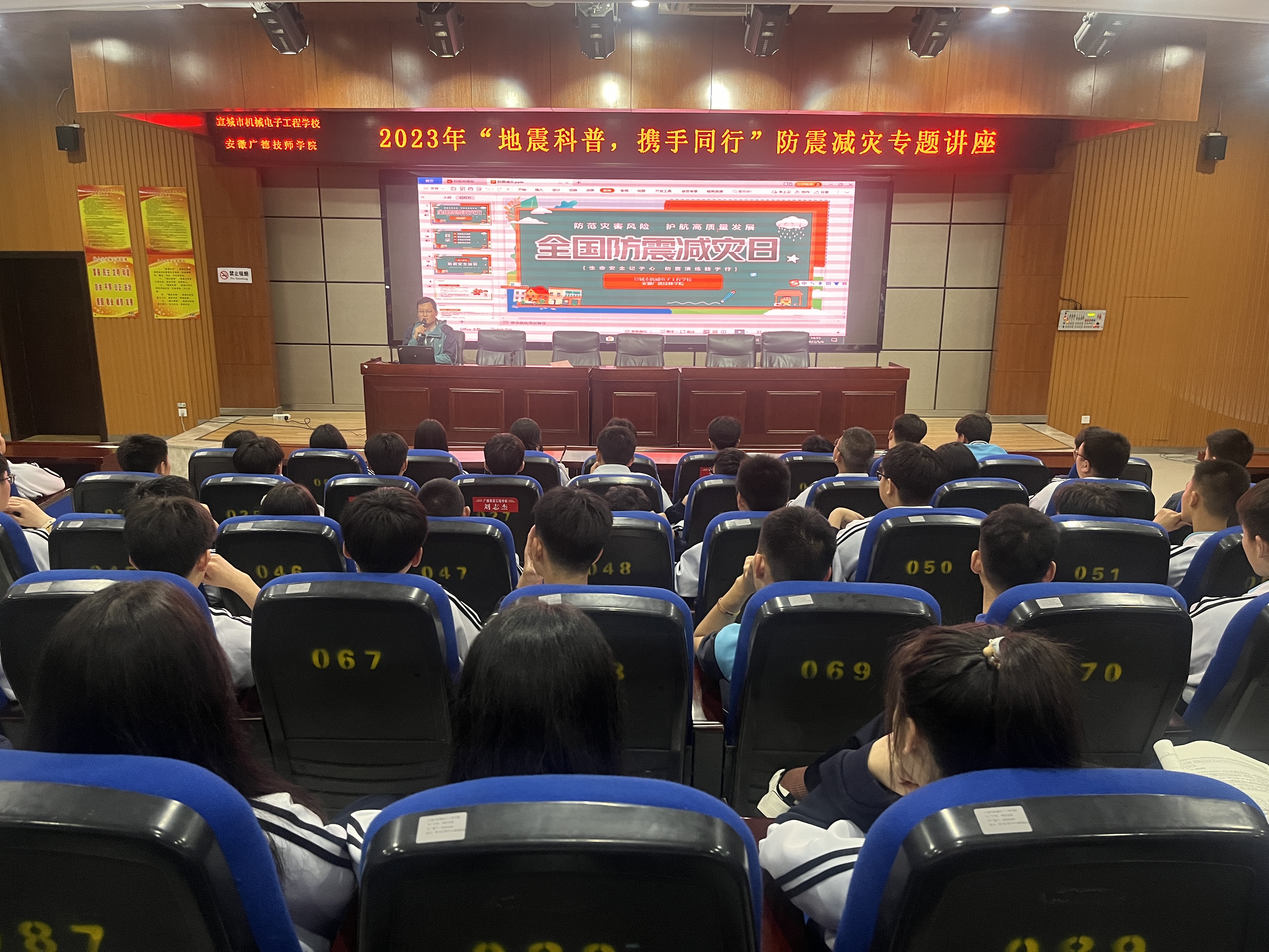为切实普及防震减灾知识,进一步提高师生遇灾后逃生自救能力,构筑生命防线,5月6日晚,宣城市机械电子工程学校(安徽广德技师学院)召开2023年“地震科普,携手同行”防震减灾专题讲座,学生处副主任石洋主讲,一百余名学生代表聆听讲座。