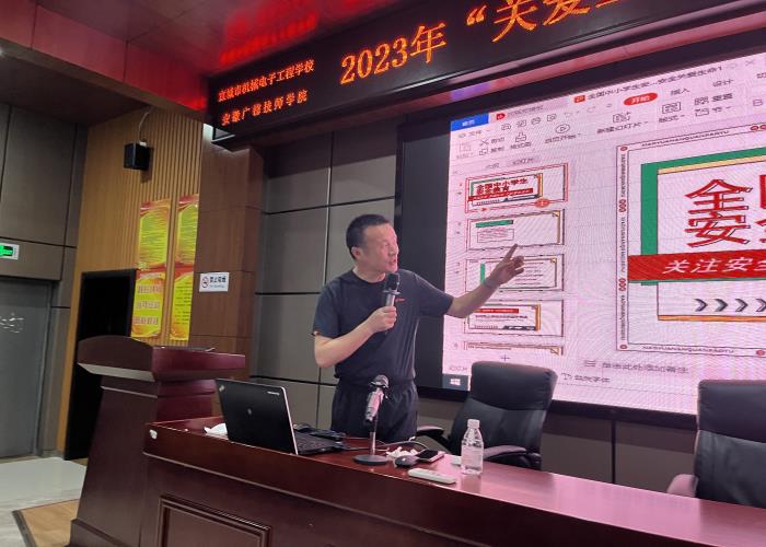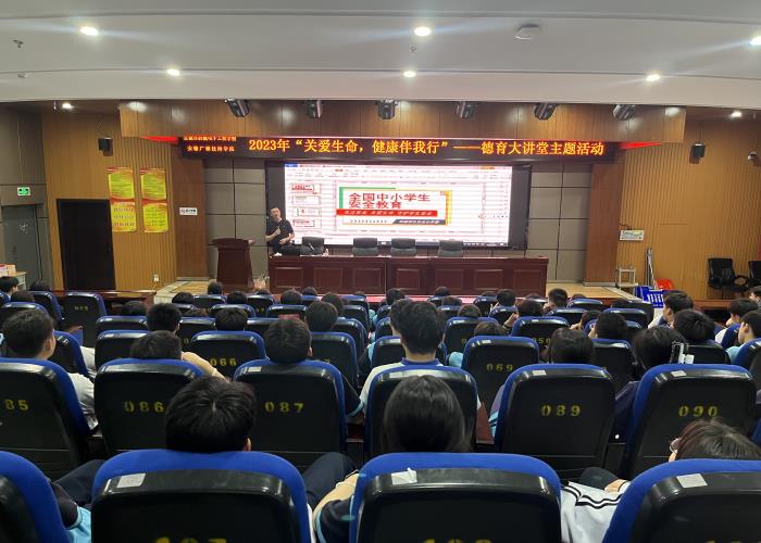 为引导学生掌握安全知识及自我保护方法,有效提高安全意识,切实保障生命安全,构建平安和谐校园,6月1日晚,宣城市机械电子工程学校(安徽广德技师学院)举行2023年“关爱生命,健康伴我行”—德育大讲堂主题教育活动,广德市名班主任简光军工作室主持人简光军主讲,一百余名学生参加讲座。