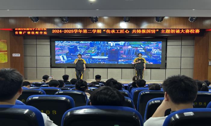 在这个春暖花开的季节里,宣城市机械电子工程学校迎来了一场别开生面的文化盛宴一-“传承工匠心,共铸报国情”主题朗诵大赛。此次大赛旨在弘扬工匠精神,激发学生的爱国情怀,让每一位学子在文字与声音的交响中,深刻体会工匠精神的精髓,共同铸就新时代的报国情怀。