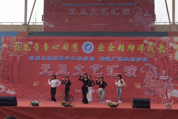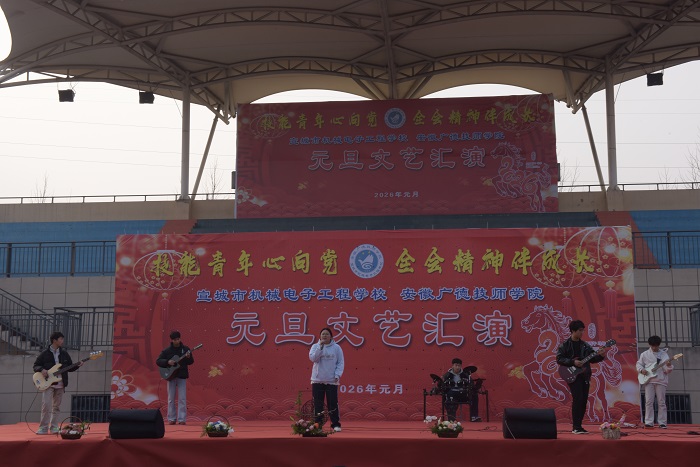 为深入学习贯彻党的二十届四中全会精神,以高质量校园文化建设落实立德树人根本任务,喜迎2026年元旦,12月30日,宣城市机械电子工程学校(安徽广德技师学院)举行“技能青年心向党,全会精神伴成长”主题元旦文艺汇演。学校党政领导班子、全体师生欢聚一堂,在洋溢着青春热情与文化自信的氛围中,共同迎接新年的到来。
