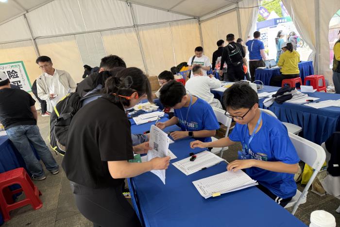 赛事期间,我校志愿者身着统一服装,以饱满的热情投入各个服务岗位。在赛道补给点,他们为参赛选手及时递上饮用水与能量补给;在检录与终点区域,他们协助工作人员完成选手引导、秩序维护、物资分发等工作;面对观众与选手的咨询,他们耐心解答、热情指引,用微笑传递温暖,用行动保障赛事有序推进。烈日之下,他们坚守岗位、分工协作,以严谨细致的服务、昂扬向上的风貌,展现了我校学子不怕苦、不怕累的优良作风,也赢得了赛事组委会、参赛选手与市民群众的一致好评。