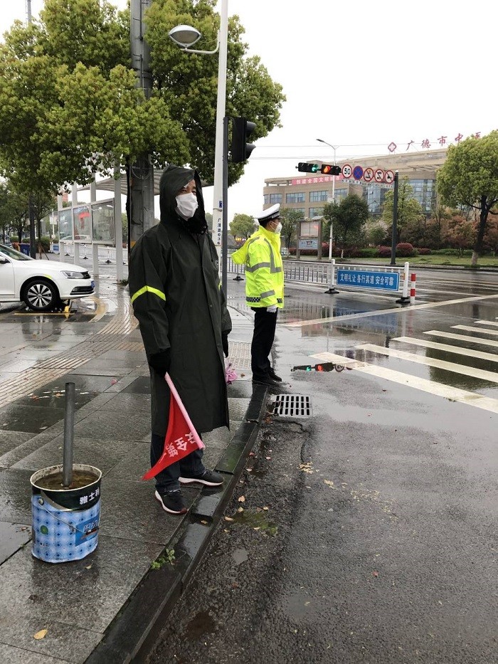 3月31日,宣城市机械电子工程学校组织文明交通志愿者服务队在广德县中医院红绿灯路口进行文明交通劝导志愿服务活动。