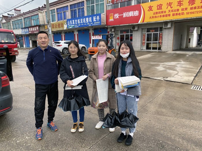 老师们早上6点从城区出发, 12点左右回到城区,行程近200公里。在每个联系点,学生们早早等候,师生互致问好。老师们将语文、学前教育专业课资料发给大家,并希望大家克服困难,缓解居家焦躁的情绪,做好视力防护,安心认真高效复习。