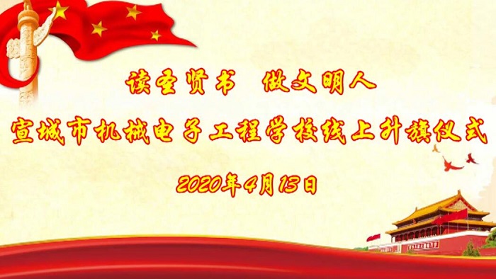 4月13日上午8:00,宣城市机电学校(广德高级技工学校)举行线上升旗仪式。仪式由团委副书记李君璐主持,全体师生跟随网络直播,参加这场特殊而庄严的活动。