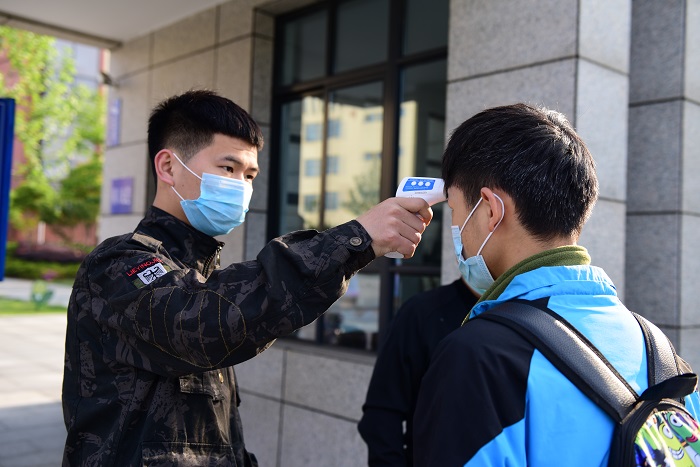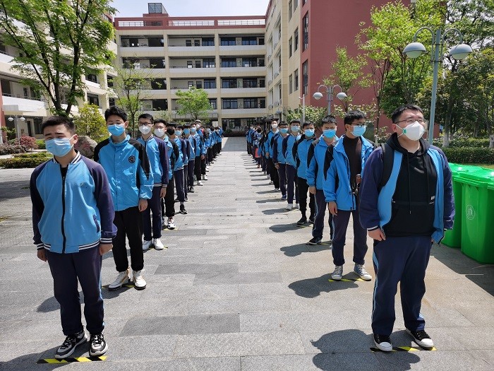 上午7时,该校校领导、行政值班人员、全体班主任、教官、指导等提前到岗,迎接返校学子。交警和派出所民警到现场指挥交通,维持秩序。学生通过专用通道排队、班主任在进出通道口管控并对学生进行身份查验、体温检测。2千余名学生全部返校。整个入校过程流畅有序。