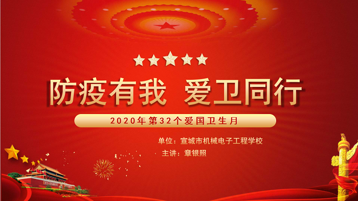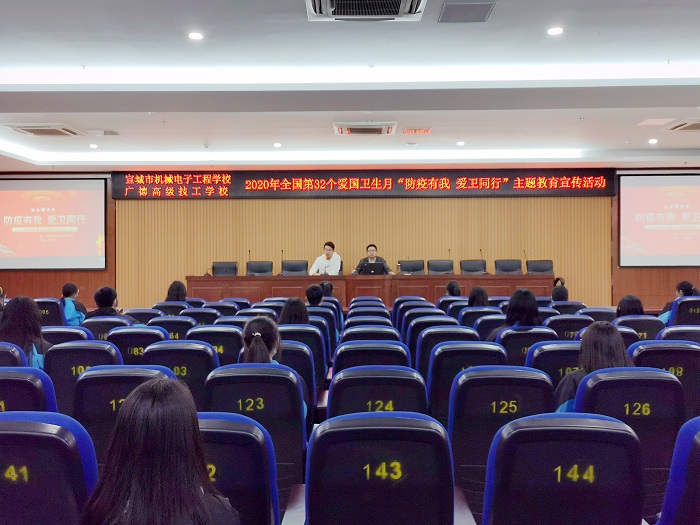 4月22日,在第32个爱国卫生月来临之际,宣城市机械电子工程学校在全校开展“防疫有我,爱卫同行”为主题的爱国卫生月教育学习活动启动仪式。活动分主、分会场,全校2000多名学生参加了活动。