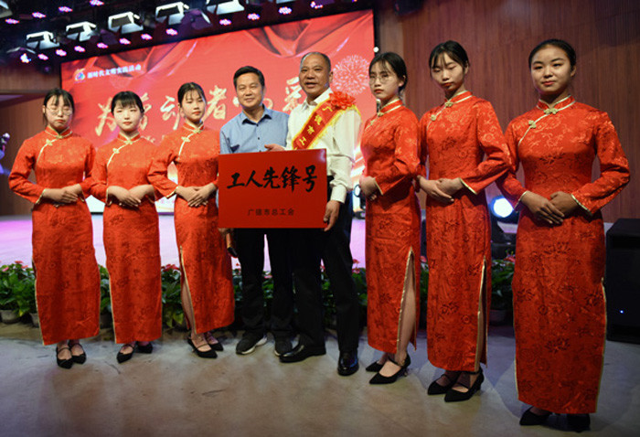 4月30日,广德市举行庆“五一”表彰活动,全方位展现各行业劳动者的精神风采,进一步营造“劳动最光荣、劳动最伟大、劳动最崇高、劳动最美丽”的社会风尚。陈红英、嵇文、程利等四大班子领导出席表彰活动。与会市领导分别为“五一劳动奖章”获得者、工人先锋号、G60科创走廊技能竞赛、省劳动竞赛、安康杯竞赛获奖单位、优秀职工及第二届宣城工匠颁奖。广德市中职课程暨课堂教学名师工作室获得“工人先锋号”荣誉称号。