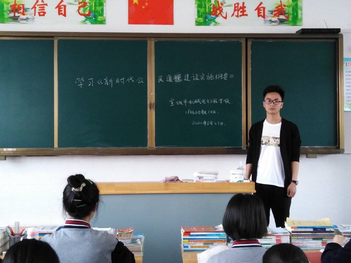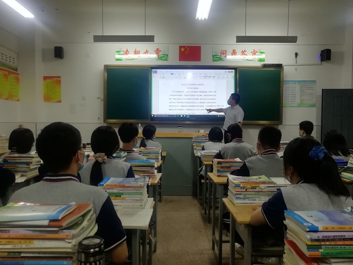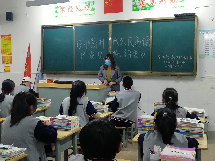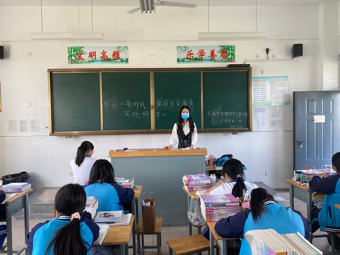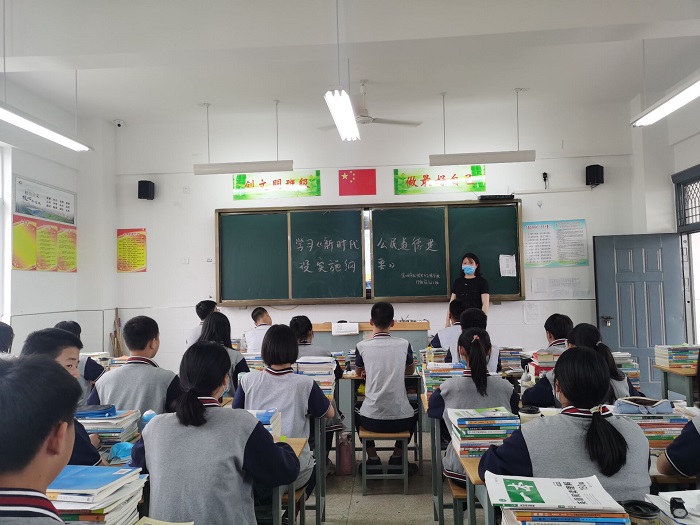 该校各班主任利用班会课,集中组织学生对《新时代公民道德建设实施纲要》和《新时代爱国主义教育实施纲要》进行专题学习,全校近3000名师生参与学习。