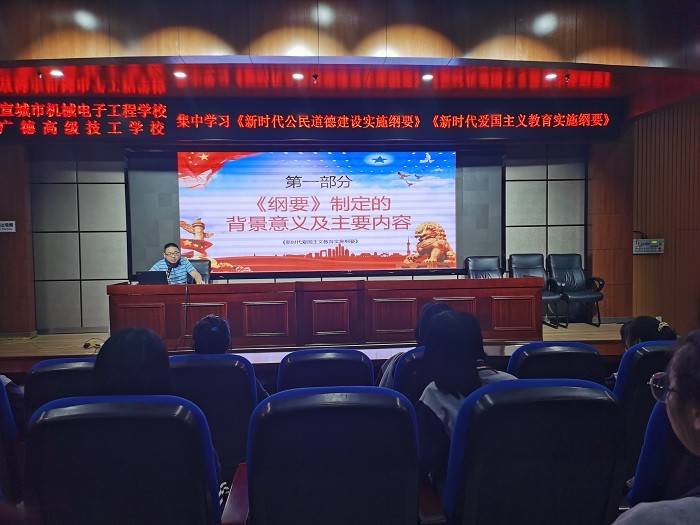 为学习贯彻《新时代爱国主义教育实施纲要》和《新时代公民道德建设实施纲要》精神,5月18至27日,宣城市机电学校分批集中学习了《新时代爱国主义教育实施纲要》和《新时代公民道德建设实施纲要》,学习活动设主、分会场进行。