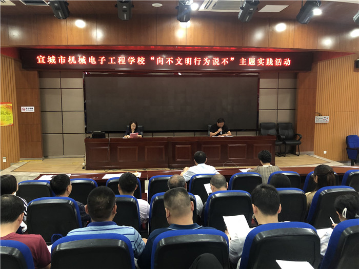 5月27日,宣城市机电学校党委组织全体党员开展了“向不文明行为说不”的主题实践活动,学校党委委员、副校长杨林主持活动。