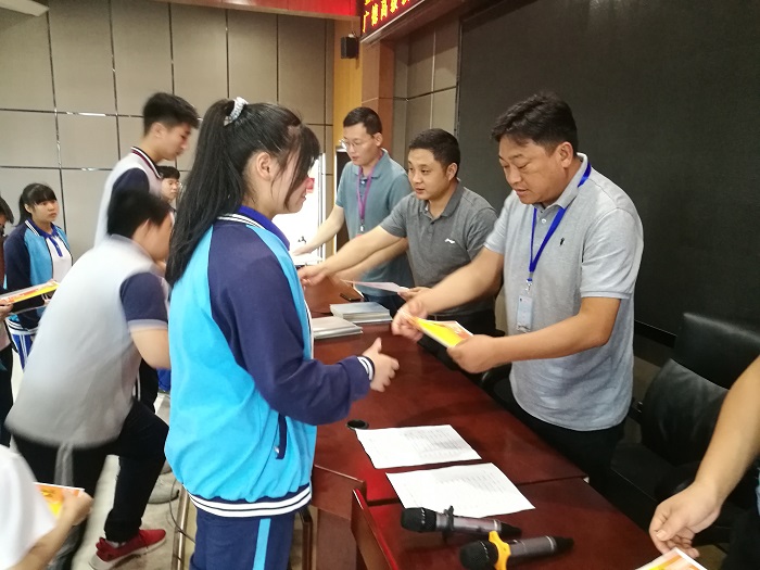 学生科副科长章银照宣读了表彰决定,杨林作主题讲话。他说,学校高度重视学生的思想道德建设,积极践行社会主义核心价值观,他要求全体同学要树立远大理想,不断提升自身能力,提高综合素质,从身边一点一滴的小事做起,争做新时代好少年。