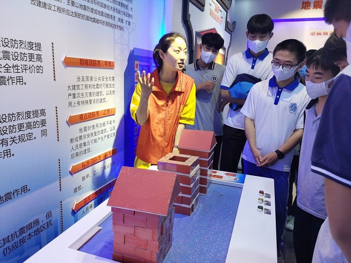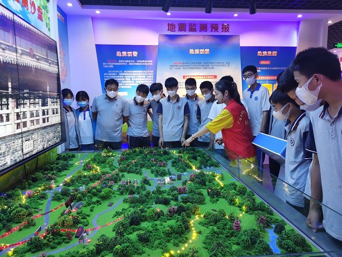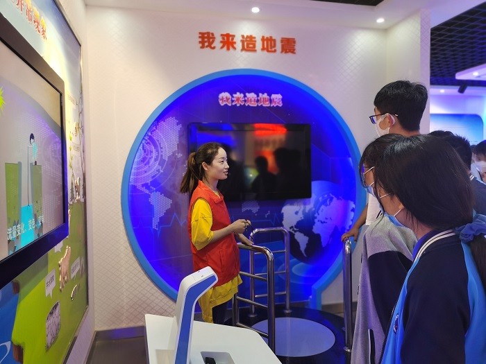 参观中,师生们听取科技与科普志愿者讲解地震有关知识,通过对四大展厅的参观及地震体验屋的亲身体验、家庭模拟避震的演练,师生们懂得了当地震来袭时怎样紧急避险,怎样保护自己。