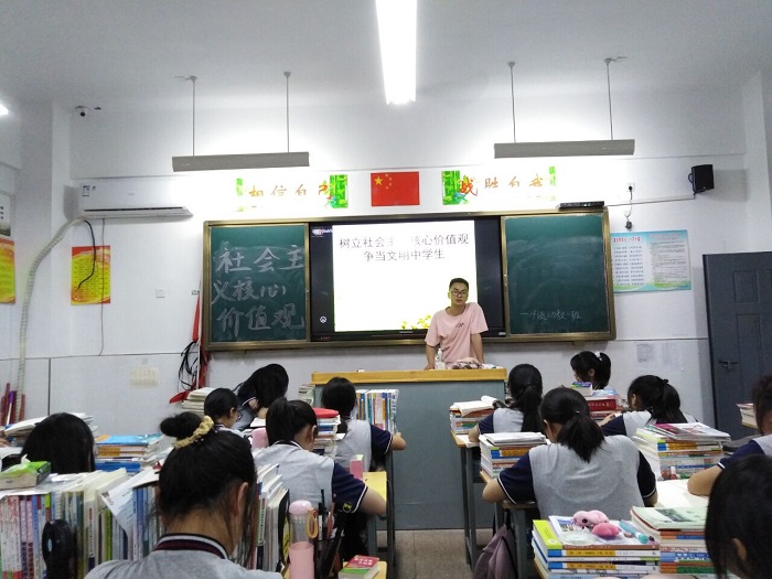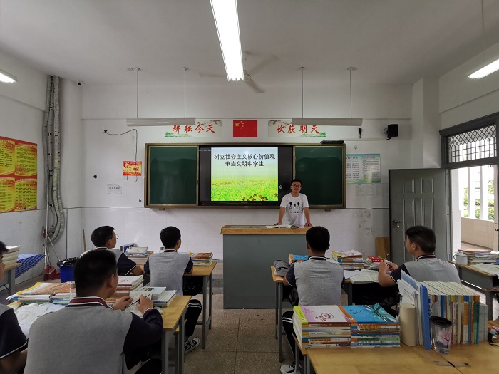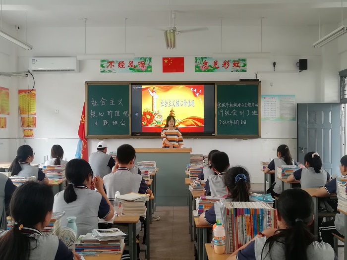 活动中,各班主任向同学们阐述了社会主义核心价值观的主要内容及深刻涵义,教育同学们在成才的过程中,要养成良好的道德行为规范,从小做积极向上的好孩子,长大后成为有担当、有责任感的好公民。同学们也踊跃发言,畅谈自己对社会主义核心价值观的认识和理解,表示要从平时的点滴做起,用实际行动来践行社会主义核心价值观。