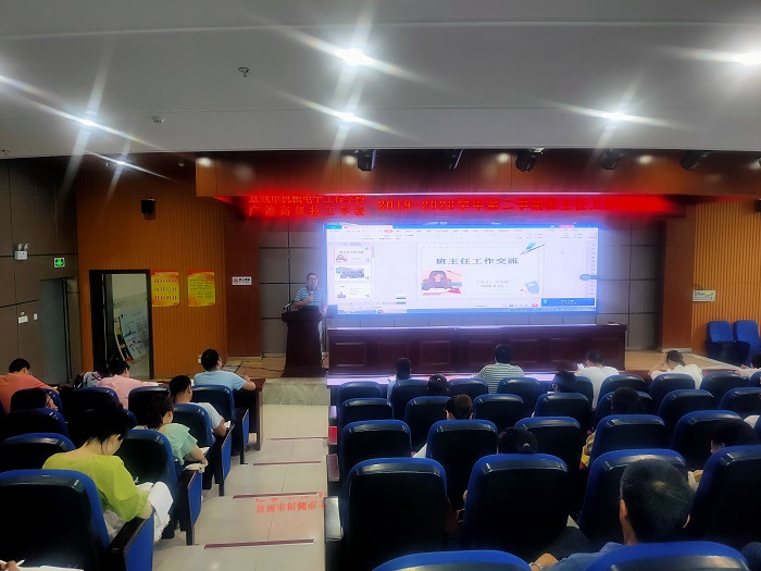 6月24日,宣城市机械电子工程学校在图书信息中心一楼召开2019-2020学年第二学期班主任工作培训会,会议由学生科副主任章银照主持,机电工程部吴金群、社会文化服务部简光军和商贸信息部梅德权三位高三班主任老师作会上讲话,全体班主任教师参加会议。