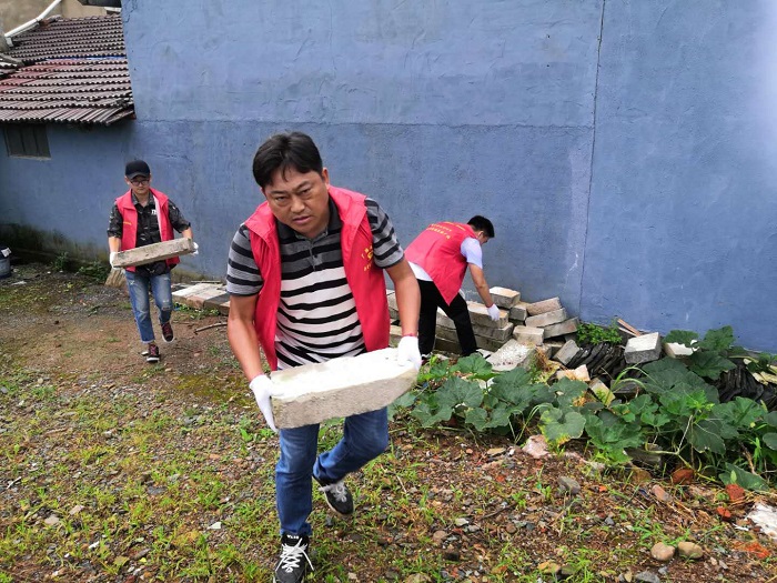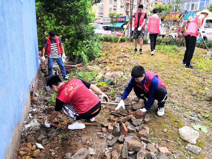 活动现场,赖家荣带头垂范,冲锋在前,不怕脏、不怕累,带领志愿们拿起锄头、铁锹、扫帚等工具,清理垃圾杂物等。在西关街道边无人管理的停车场,他们认真地将周边的花圃中的杂物铲除,将停车场内及周边的烟头、废纸等垃圾,清理干净并运走。在西关街无人管理的内巷,用手将堆在墙角边废弃的砖头、长石块搬走,将长期无人清理的背街后巷清扫干净,并将积存垃圾清理运走。