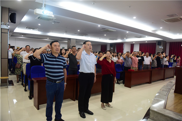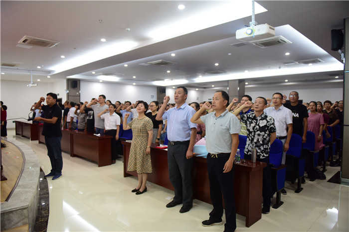 会议最后进行了师德承诺和宣誓大会。全体教职工起立举起右手,进行了庄严的宣誓并签订了《师德师风承诺书》。(宁向辉)