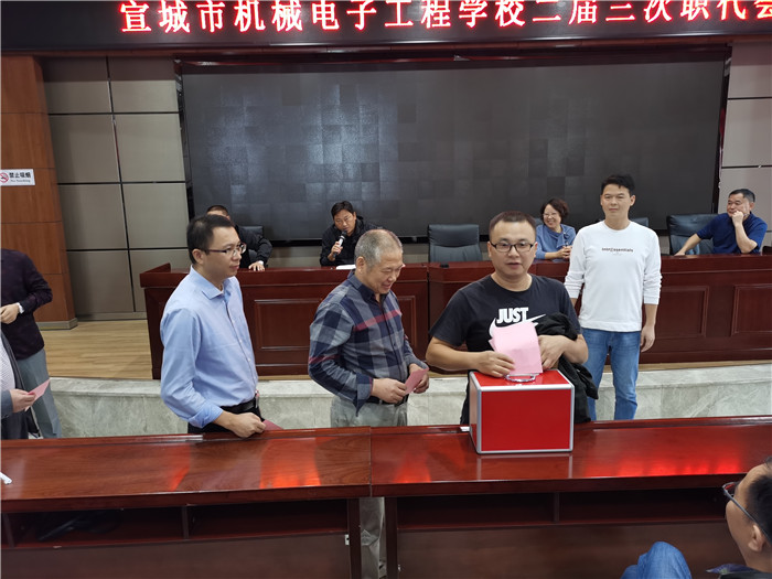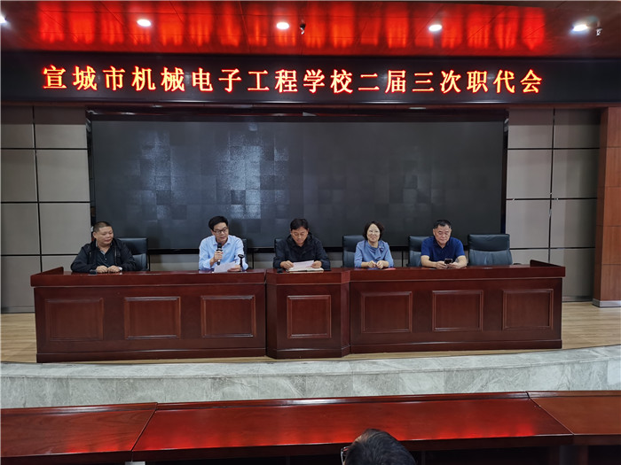 9月24日上午,机电学校二届三次教职工代表大会在校召开。此次大会主要议题为补选新的工会主席。全体职代会代表参加会议,校党委领导陈传胜、杨林、吴自成、蔡守云,校工会主席迟传兴、副主席陈道才等出席会议,会议由杨林主持。