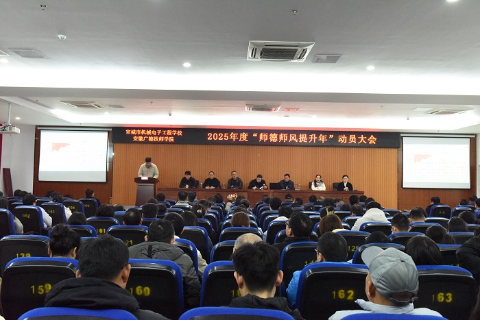 为大力弘扬教育家精神,进一步加强学校师德师风建设,提升教师队伍整体素质,实现精细化管理和高质量发展。3月10日,宣城市机电学校召开“师德师风提升年”动员大会。学校党政班子出席活动,全体教职工参加活动。活动由学校党委副书记杨林主持。
