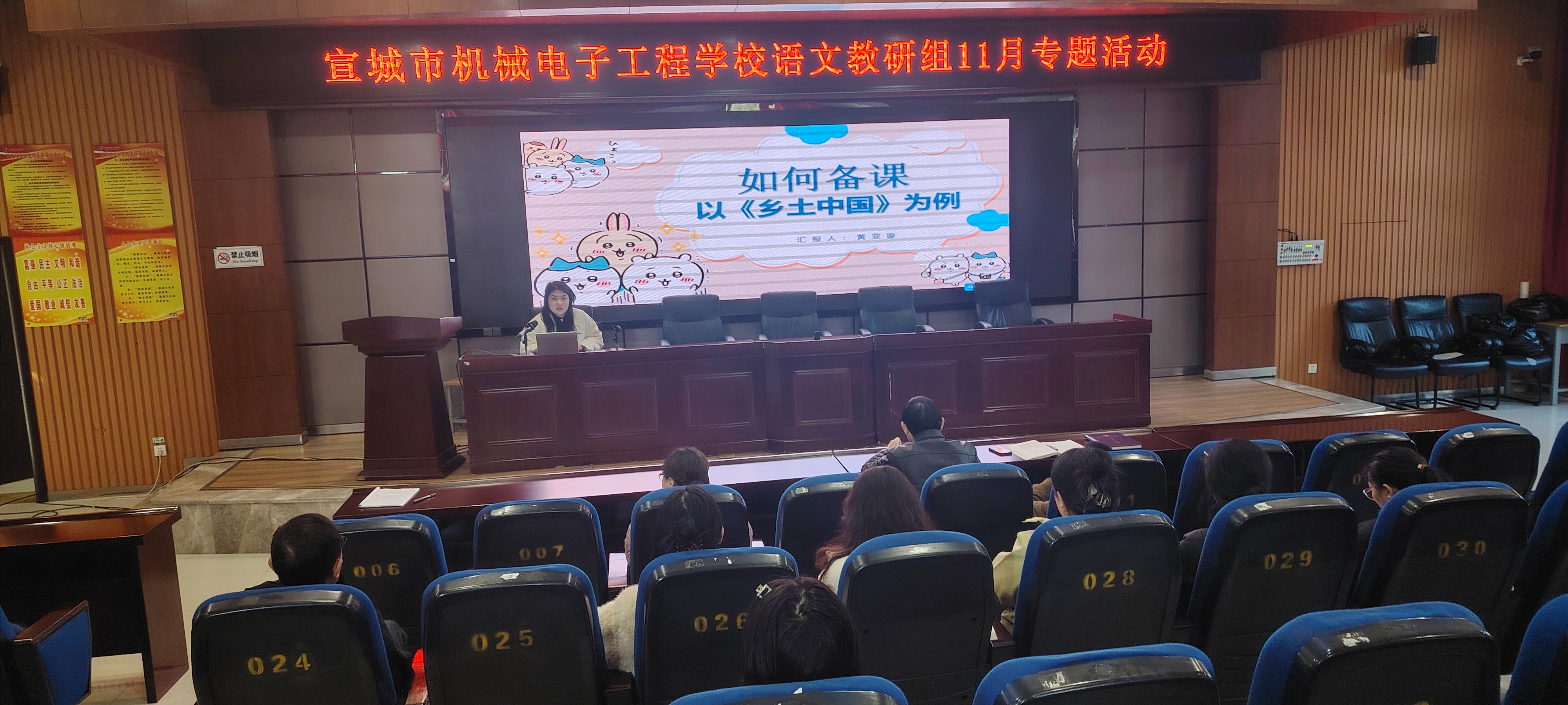 为深化新时代教师队伍建设,提升师德修养与教学能力,11月19日下午,宣城市机电学校语文教研组在信息楼一楼会议室组织开展了“立德树人 深耕课堂”专题学习活动。活动融合线上师德典型学习与线下教学实战研讨,取得了扎实成效。