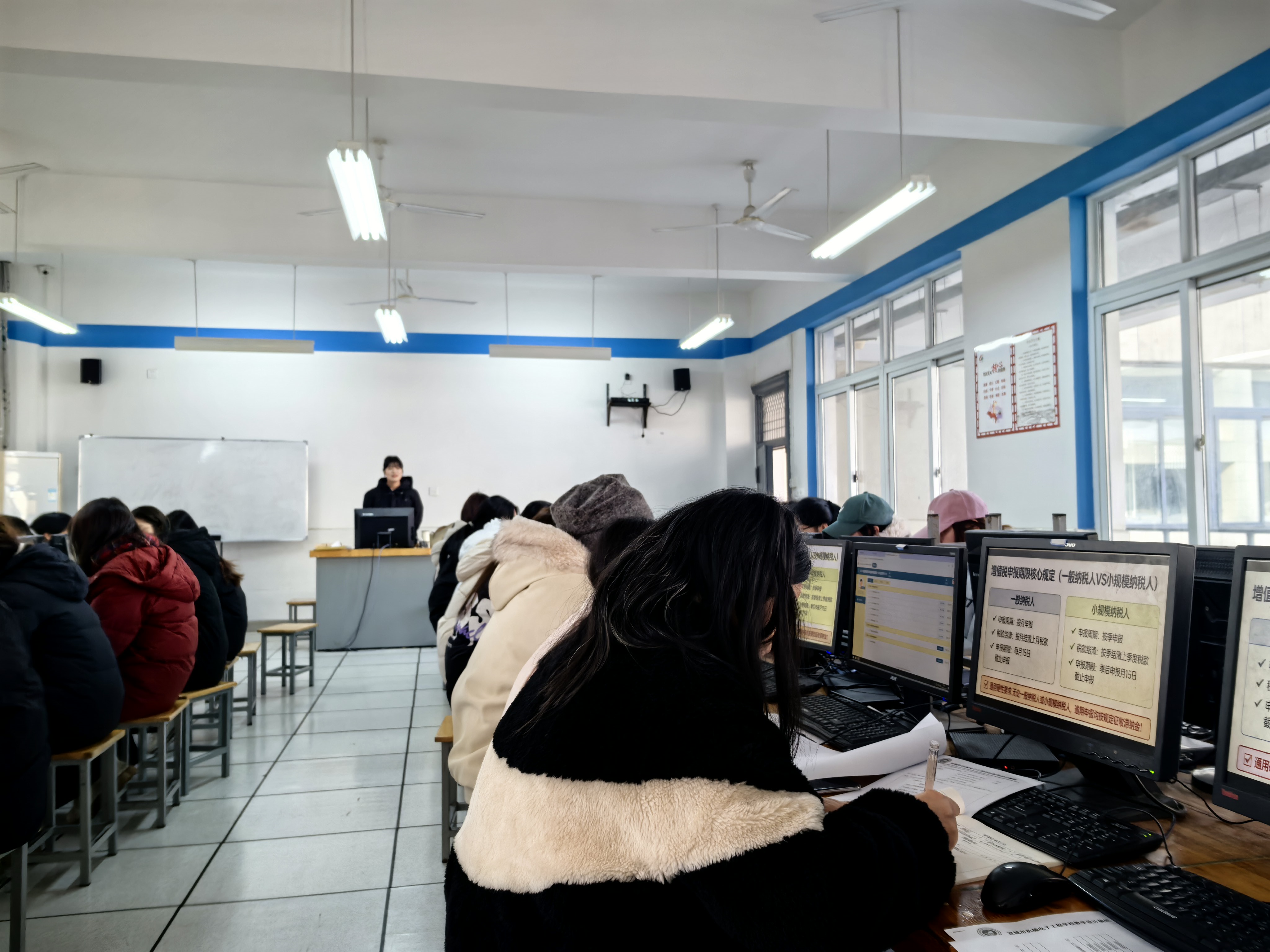 针对一般纳税人与小规模纳税人申报差异、违约金收入等特殊业务处理等重难点,张老师结合智能财税实训系统现场演示,引导同学们以常州瑞泰账套为案例动手实操。在 “学中做、做中学” 的氛围中,同学们熟练掌握了附表一填报技巧,筑牢了严谨规范的税务申报意识。