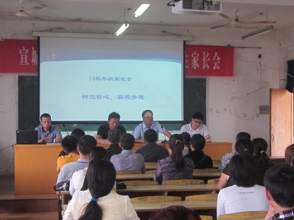 集体家长会,由年级组长梅德权主持,会上家长代表发言,就孩子的教育问题展开交流;教务处副主任何福发介绍了学校教学工作:学校概况、师资力量、专业设置、对口高考政策、我校近年来对口高考取得的成绩等;学生处主任杨林介绍了学校管理工作:学生的一日常规、学生的奖惩规定、中职生国家资助政策以及如何做好孩子的教育等。