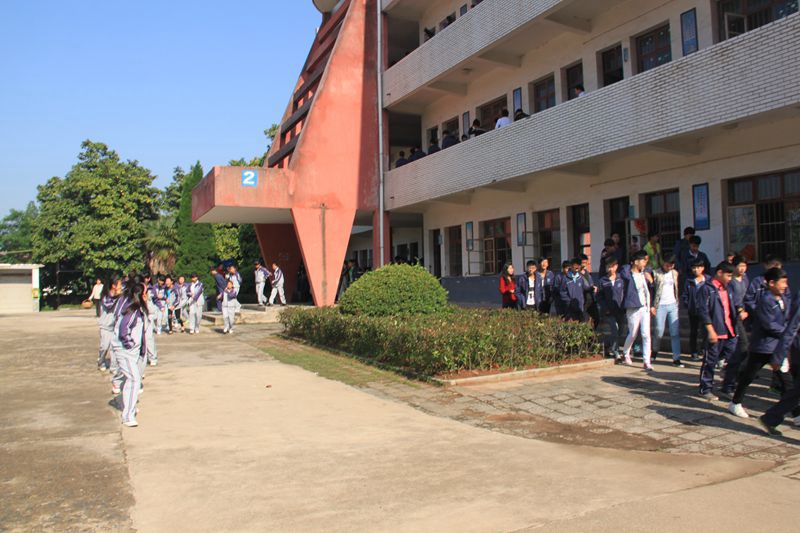 当广播拉响警报时,全体师生严格按照紧急安全疏散演练方案,进入各自岗位进行及时疏散,各班学生在老师指挥下按照指定的安全出口、撤离路线有序地离开教室到安全地带。整个过程紧张而有序,1400余名学生和老师全部安全、迅速地到达集合地点,收到了预期效果。