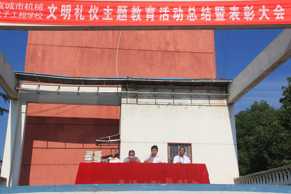 2013年6月17日上午7:00,在校田径运动场,市机电学校举行了“文明礼仪”主题教育活动总结暨表彰大会。共有八个班级获得“文明礼仪示范班级”、七十七名同学获得“文明礼仪之星”光荣称号。