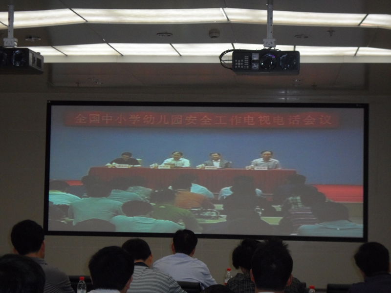 2013年5月15日下午2:00,广德县教体局在县行政会议中心,组织全县中小学、幼儿园主要负责人,参加了《全国中小学幼儿园安全工作电视电话会议》,会议由教育部基础司司长王定华主持。