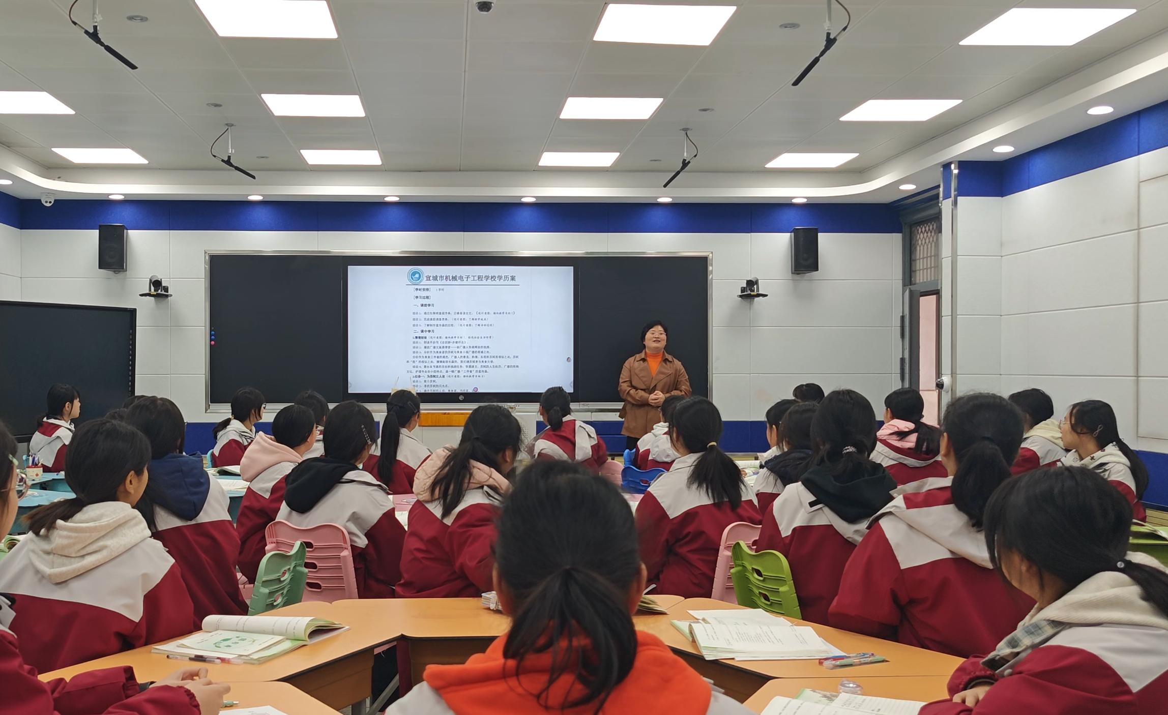 活动采取线上线下结合形式。12月10日,工作室主持人仇敏主持线上课前会议,明确观察重点,并邀请专家就课题宣传推广进行指导。12月12日,活动进入线下实践环节。仇敏老师在宣城市机电学校录播室执教研讨课《念奴娇·赤壁怀古》。她紧扣中职语文统编教材,创新教学设计,融入广德地方文化元素,通过学历案中设置的挑战性任务,有效提升了学生的语文综合应用能力与文化理解。
