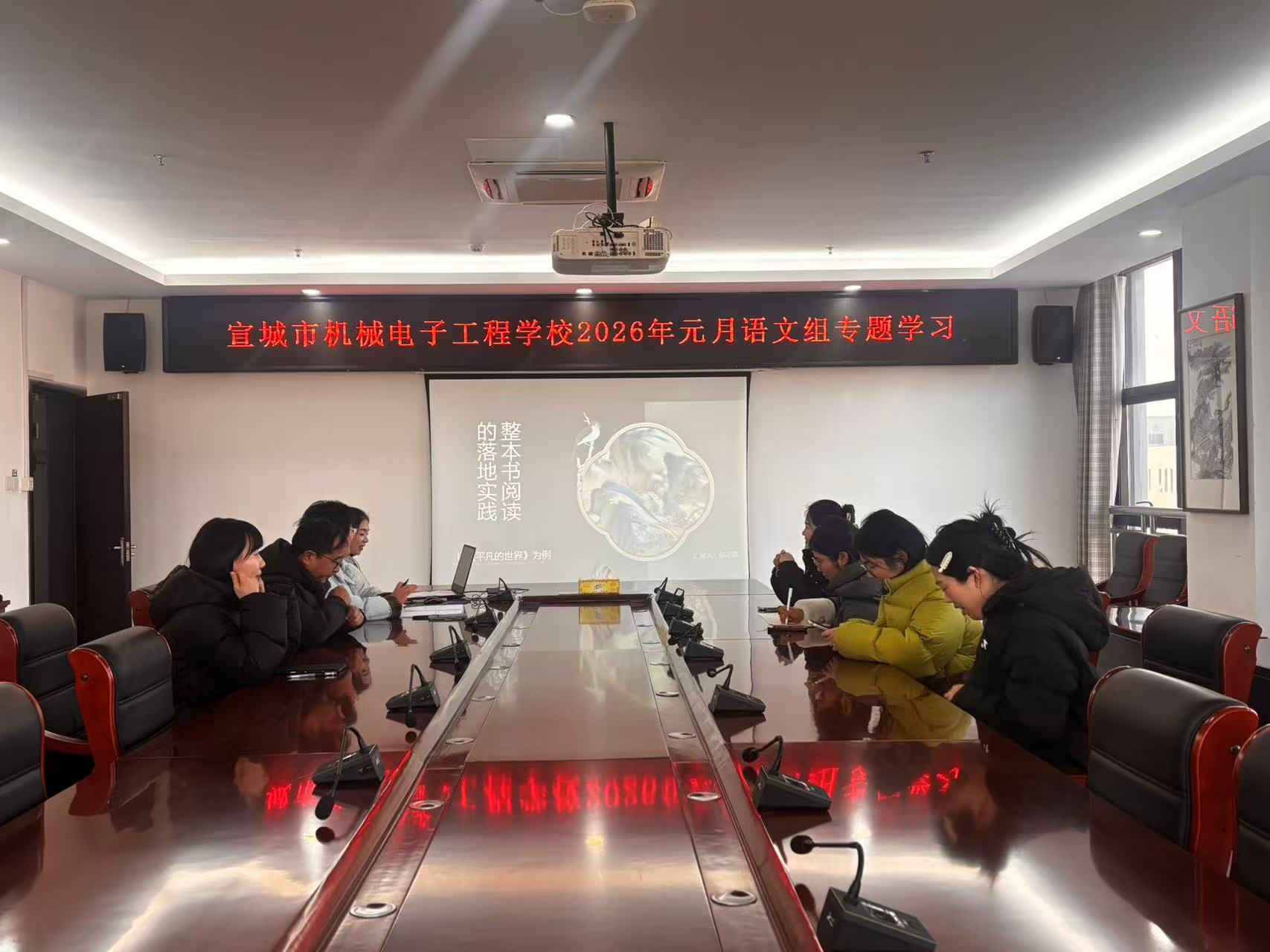 为深入推进整本书阅读教学研究,发挥名师工作室的示范引领作用,2026年1月22日下午,宣城市长三角仇敏名师工作室组织开展了“整本书阅读的教学实践”专题研修活动。本次活动以线上线下相结合的形式进行,由工作室成员陈荣霜老师主讲,工作室主持人仇敏及全体成员、宣城市机械电子工程学校语文教师共同参与。